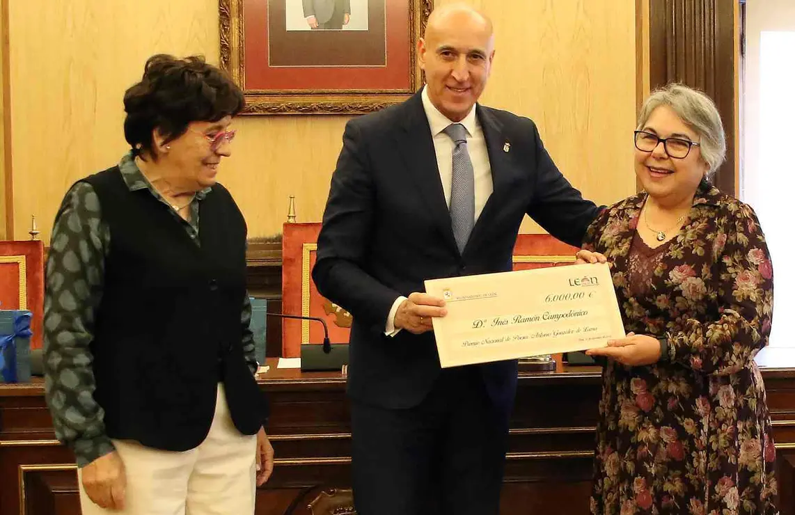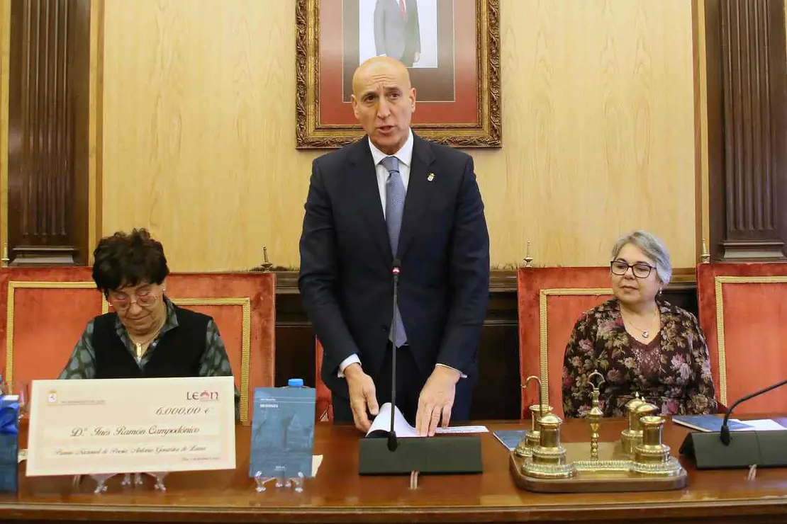 El alcalde de León, José Antonio Diez, ha entregado este viernes el Premio Nacional de Poesía Antonio González de Lama a Inés Ramón por su poemario ‘Mudanza’, obra seleccionada entre más de 620 trabajos presentados en esta 50 edición. Fotos: Peio García