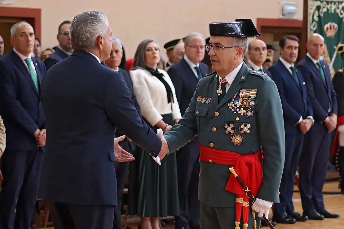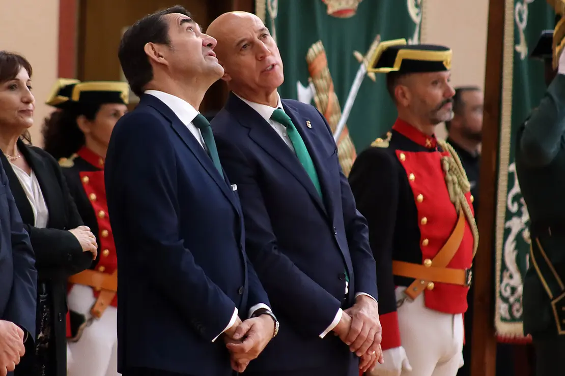 El jefe de la XII Zona de la Guardia Civil, general de Brigada José Antonio Fernández de Luz de las Heras, y el delegado del Gobierno, Nicanor Sen, presiden la celebración de la Virgen del Pilar en León, al que asisten también el alcalde, José Antonio Diez y el consejero de Medio Ambiente, Vivienda y Ordenación del Territorio, Juan Carlos Suárez-Quiñones. (Fotos: Peio García)