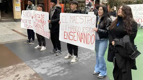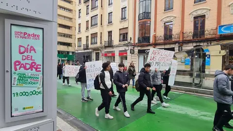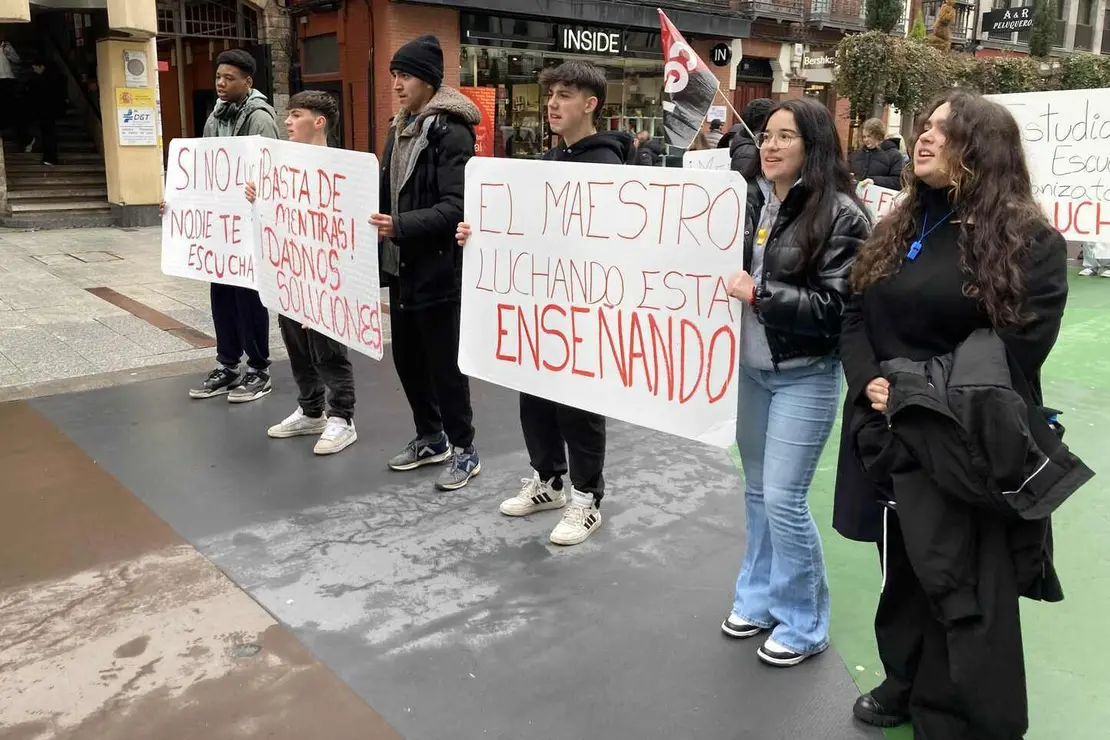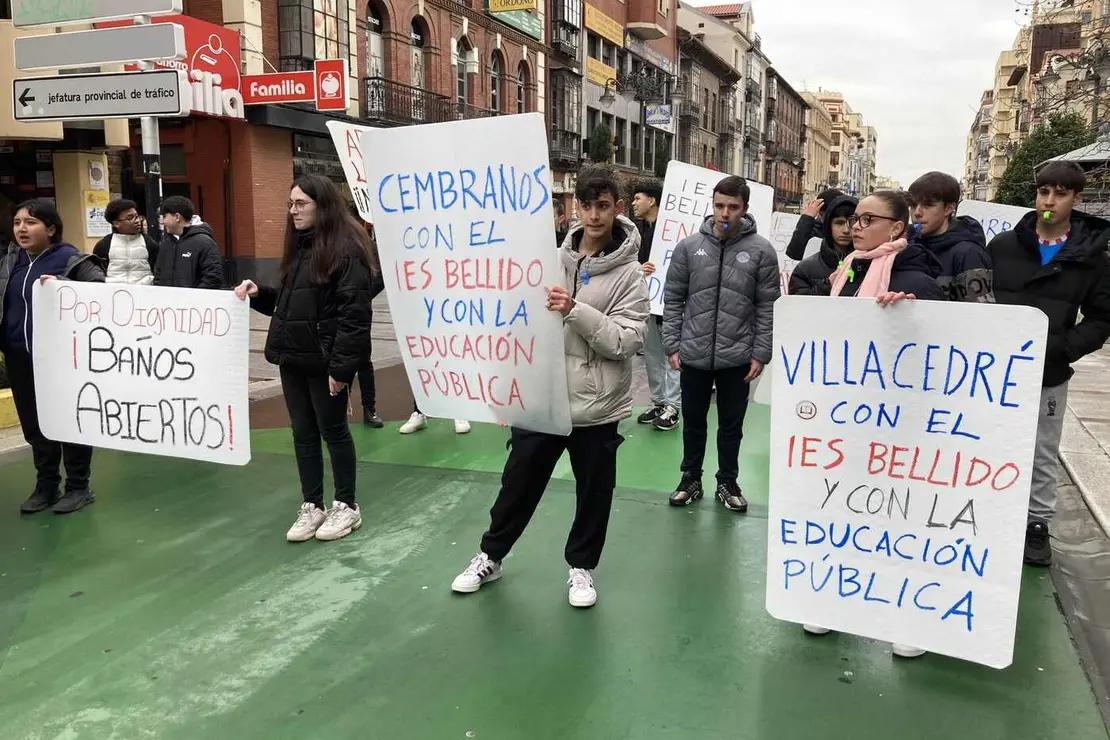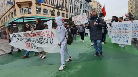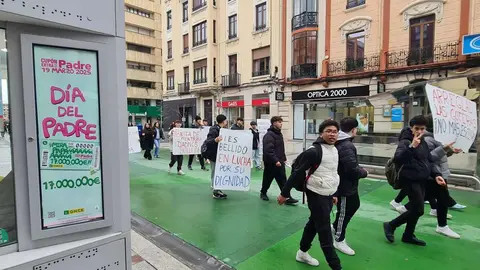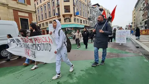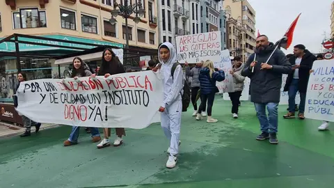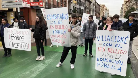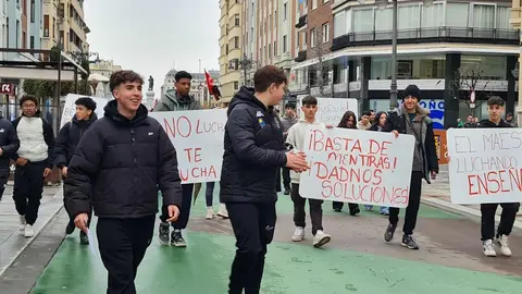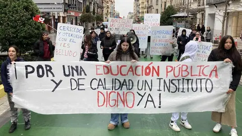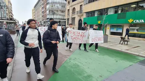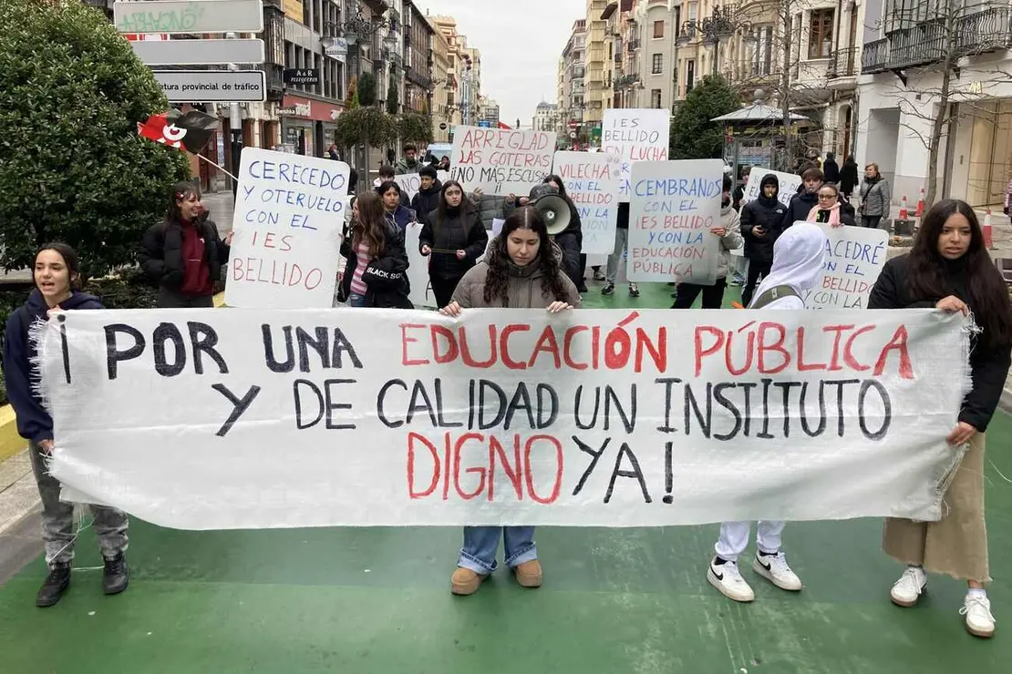 "Sin calefacción, no hay educación". Los estudiantes del instituto García Bellido de la capital, ubicado en la pedanía de Armunia, se han manifestado este jueves por las calles de León capital reclamando mejores condiciones en las aulas, más profesorado y "menos goteras".