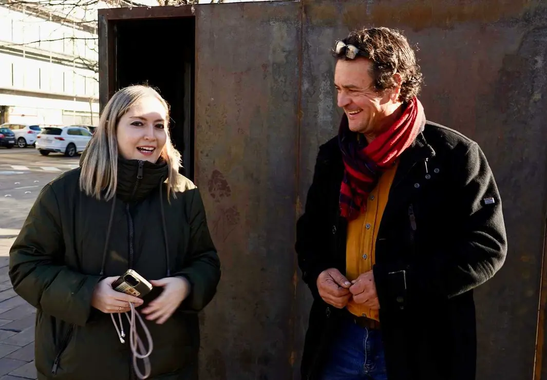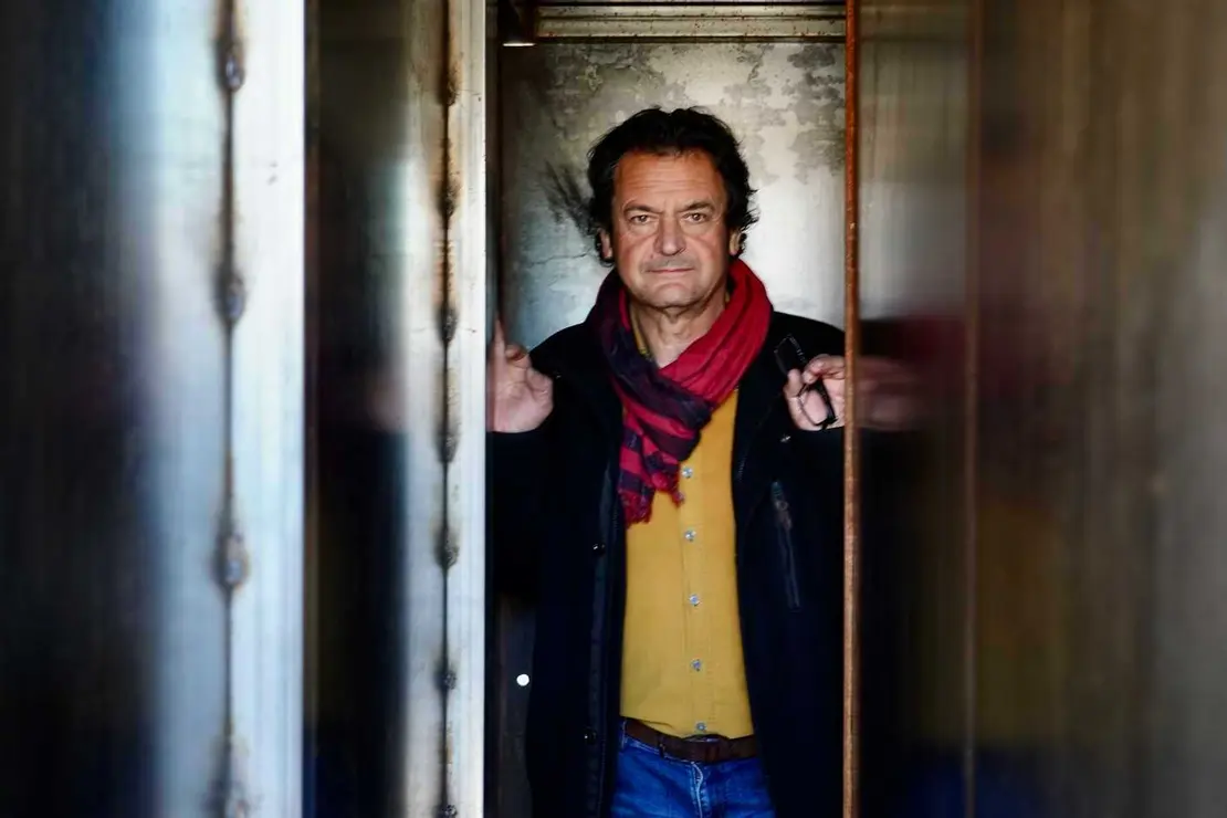 El escultor leonés Amancio González inauguró hoy la obra interactiva ‘Viaje al centro de la tierra’, que define como “un laberinto y atracción de feria” creada con motivo de la XXI edición del Festival Internacional ‘León Vive la Magia’. Fotos: Campillo