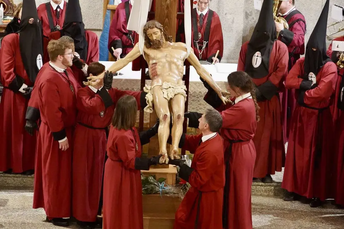 Celebración del acto del Desenclavo de Cristo tras la suspensión de la procesión organizada por la Cofradía del Santo Cristo del Desenclavo. Foto: Campillo.