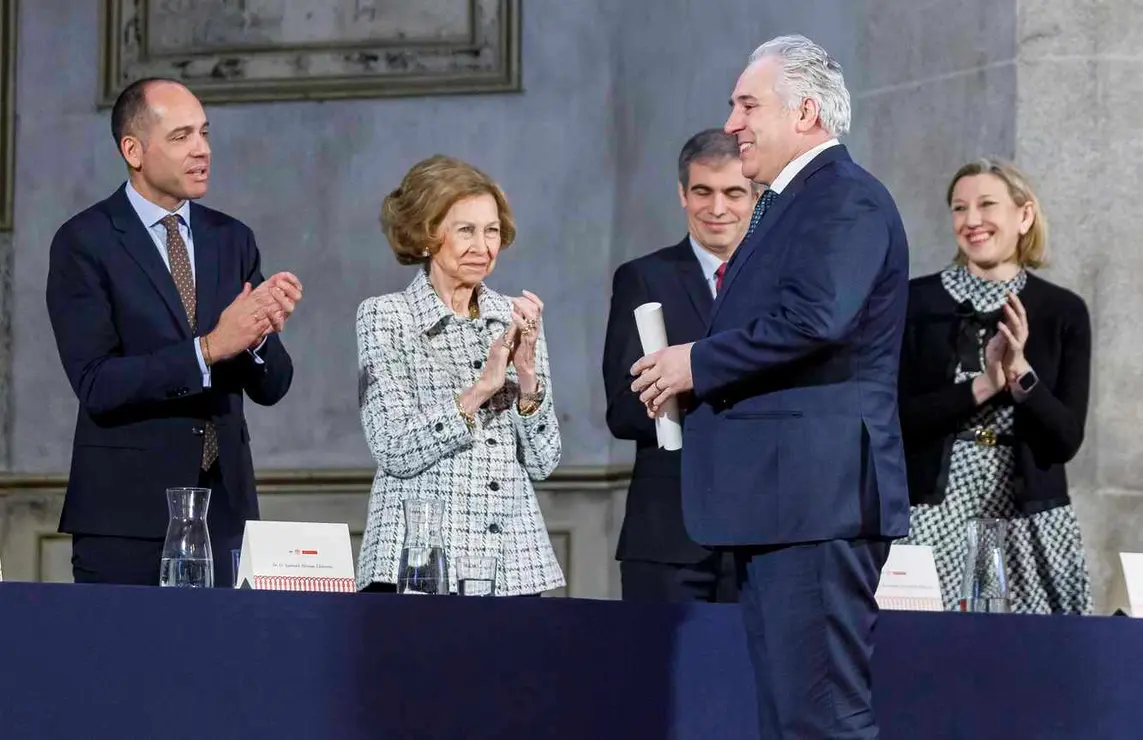 Andrés Rodríguez, socio fundador del estudio leonés Rodríguez Valbuena Arquitectos, recibe de manos de la Reina Sofía uno de los 'Premios Europa Nostra' y 'Premios Hispana Nostra' en la categoría de conservación de adaptación de nuevos usos.