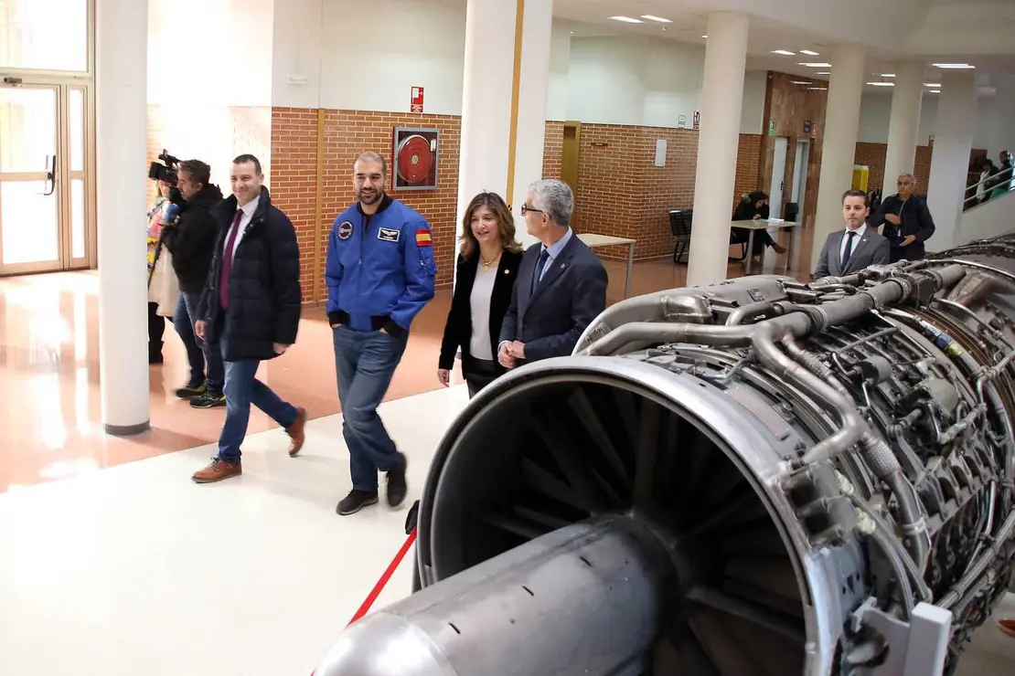El astronauta Pablo Álvarez visita la Universidad de León, acompañado por la rectora Nuria González y el director de la Escuela de Ingeniería, Joaquín Barreiro. Foto: Peio García