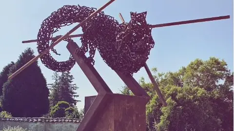 Este nuevo conjunto escultórico que pone en valor el patrimonio ferroviario de Astorga se suma al resto de obras ya presentadas en meses anteriores como el dragón, también a las puertas de la ciudad, el gran Augusto de Prima Porta que preside desde hace unos meses la entrada a Astorga, el 'obispo' instalado en Murias de Rechivaldo, y a la figura sujetando un arco de Santa Catalina de Somoza, obras que ya han sido ejecutadas y emplazadas meses atrás buscando embellecer la Maragatería y aportar una cálida bienvenida a los peregrinos y visitantes de la comarca.