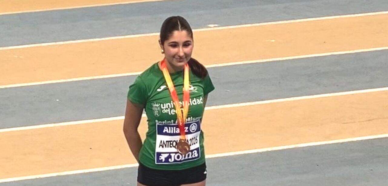 La joven atleta del Universidad de León Sprint Atletismo logra su primera medalla nacional tras un espectacular sprint final en los 1.500 metros disputados en Antequera