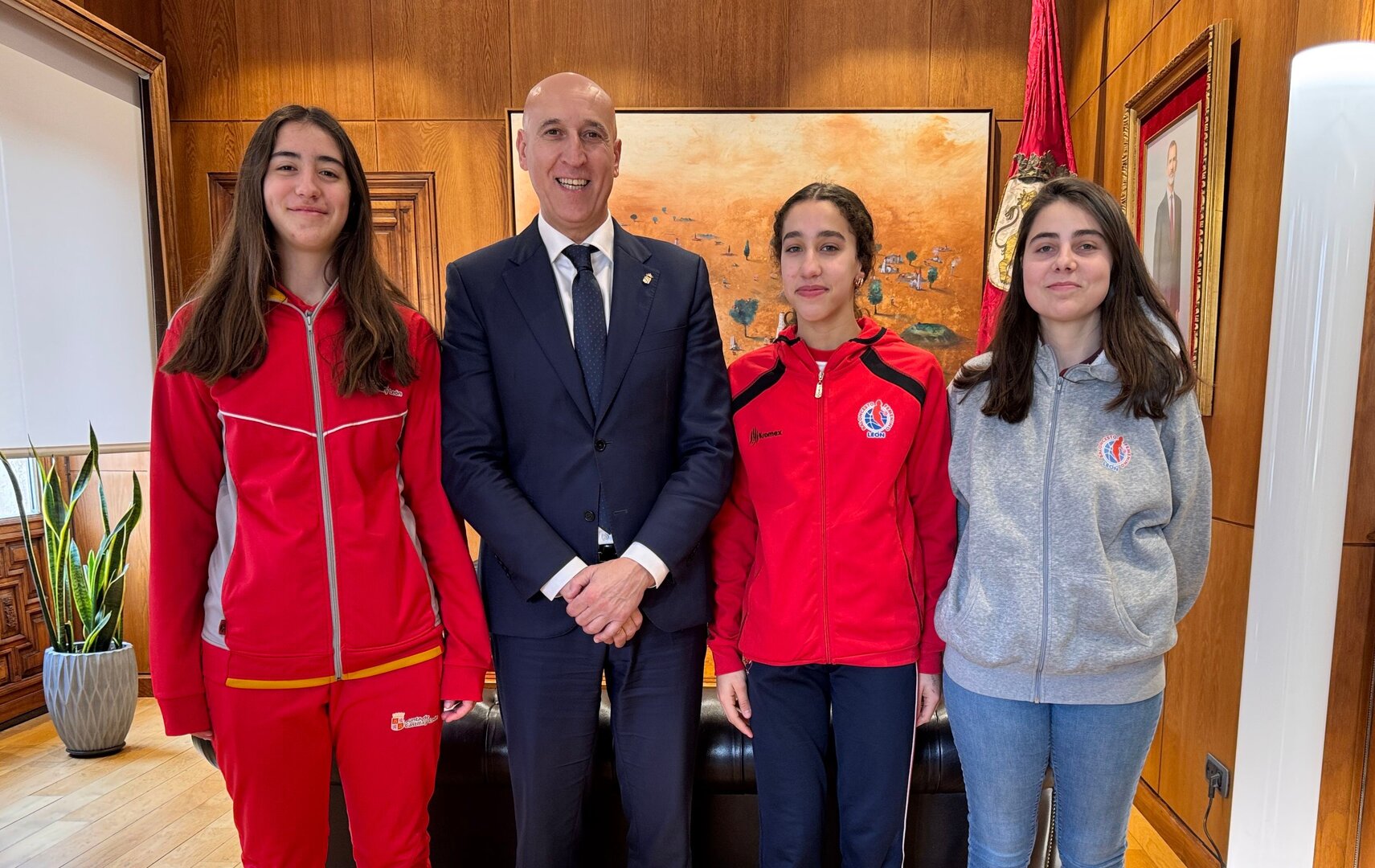El alcalde de León, José Antonio Diez, ha recibido a las jugadoras leonesas integrantes de la Selección Infantil Femenina de Baloncesto de Castilla y León Alicia Casas Cubero y Celia Fernández, subcampeonas de España en el Campeonato de España de Selecciones Autonómicas disputado en Huelva el pasado mes de enero.
