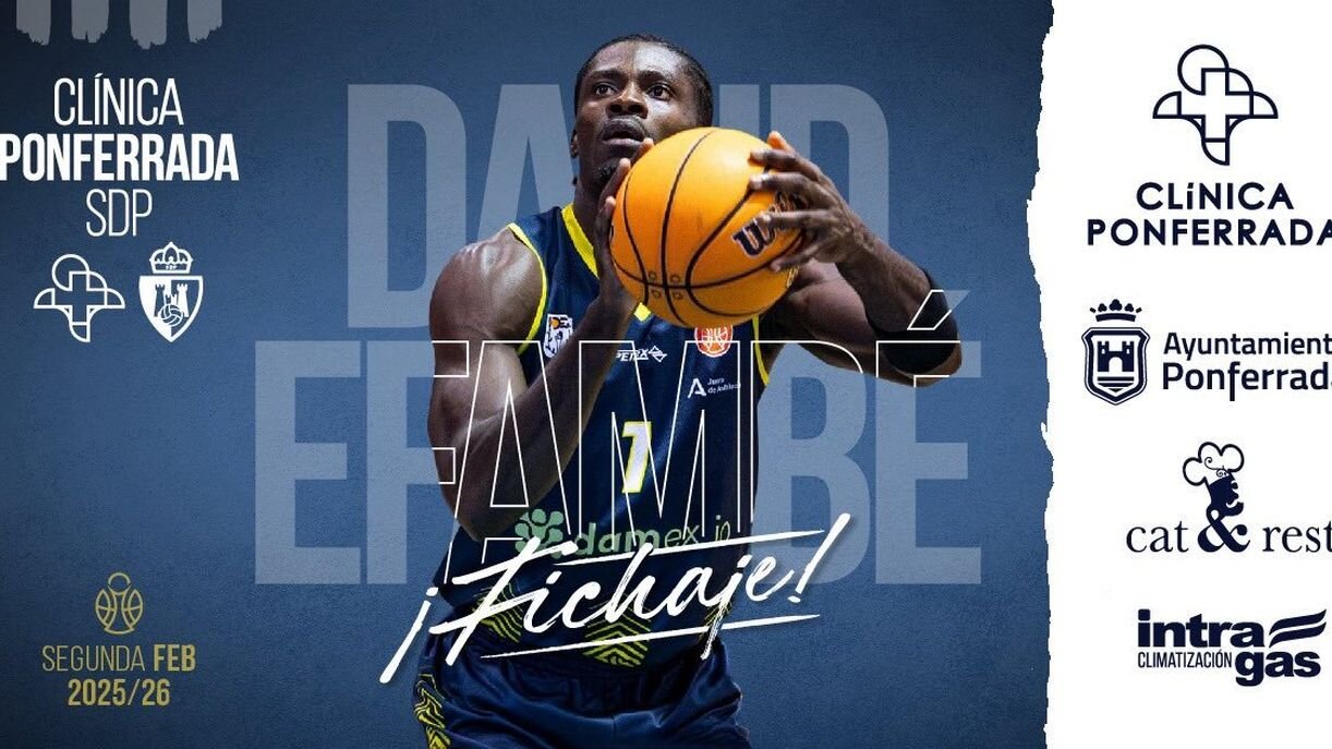 El Clínica Ponferrada SDP ha anunciado este domingo la incorporación del pívot David Efambé, jugador de 24 años que la pasada temporada defendió los colores del Damex UDEA Algeciras en el Grupo Oeste de la Segunda FEB.