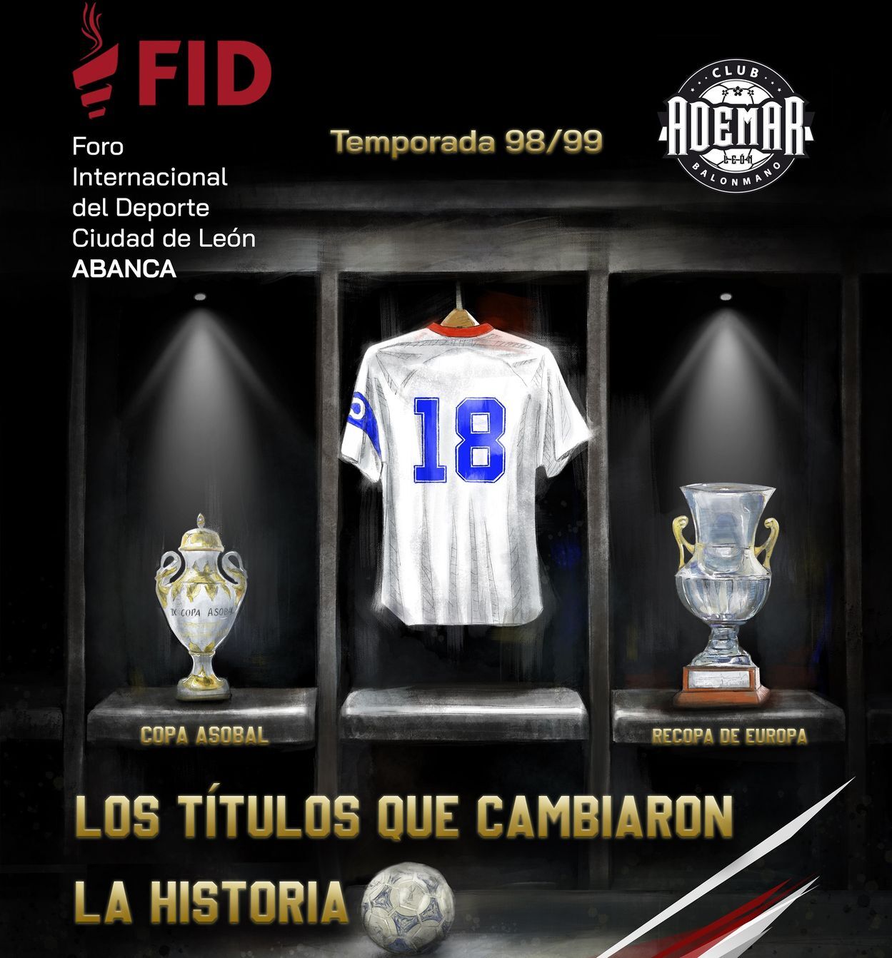 Bajo el nombre 'Los títulos que cambiaron la historia' el FID recordará esa temporada mítica de 1998-1999, en la que el Ademar León consiguió llevar a sus vitrinas la Copa Asobal, venciendo al F.C. Barcelona, y la Recopa de Europa, tras derrotar al Teka Cantabria. En este evento participará el entrenador Manolo Cadenas y en representación de los jugadores que componían esa plantilla estarán: Hombrados, Torrego y Jorge García Vega. Además, también se aprovechará esta celebración para hacer una retrospectiva del club leonés desde esta efeméride hasta la actualidad y para entregar a Manolo Cadenas el Premio FID Legado, con el que se pretende reconocer la trayectoria del entrenador nacido en Valdevimbre, los valores que ha transmitido durante su carrera y todo lo que ha aportado al balonmano y al deporte leonés.