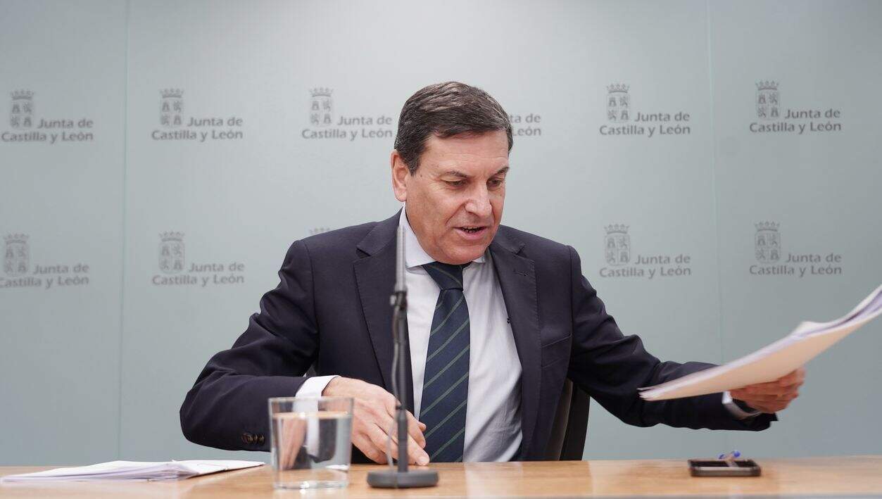 El consejero de Economía y Hacienda y portavoz, Carlos Fernández Carriedo, comparece en rueda de prensa posterior al Consejo de Gobierno. Foto: Rubén Cacho.
