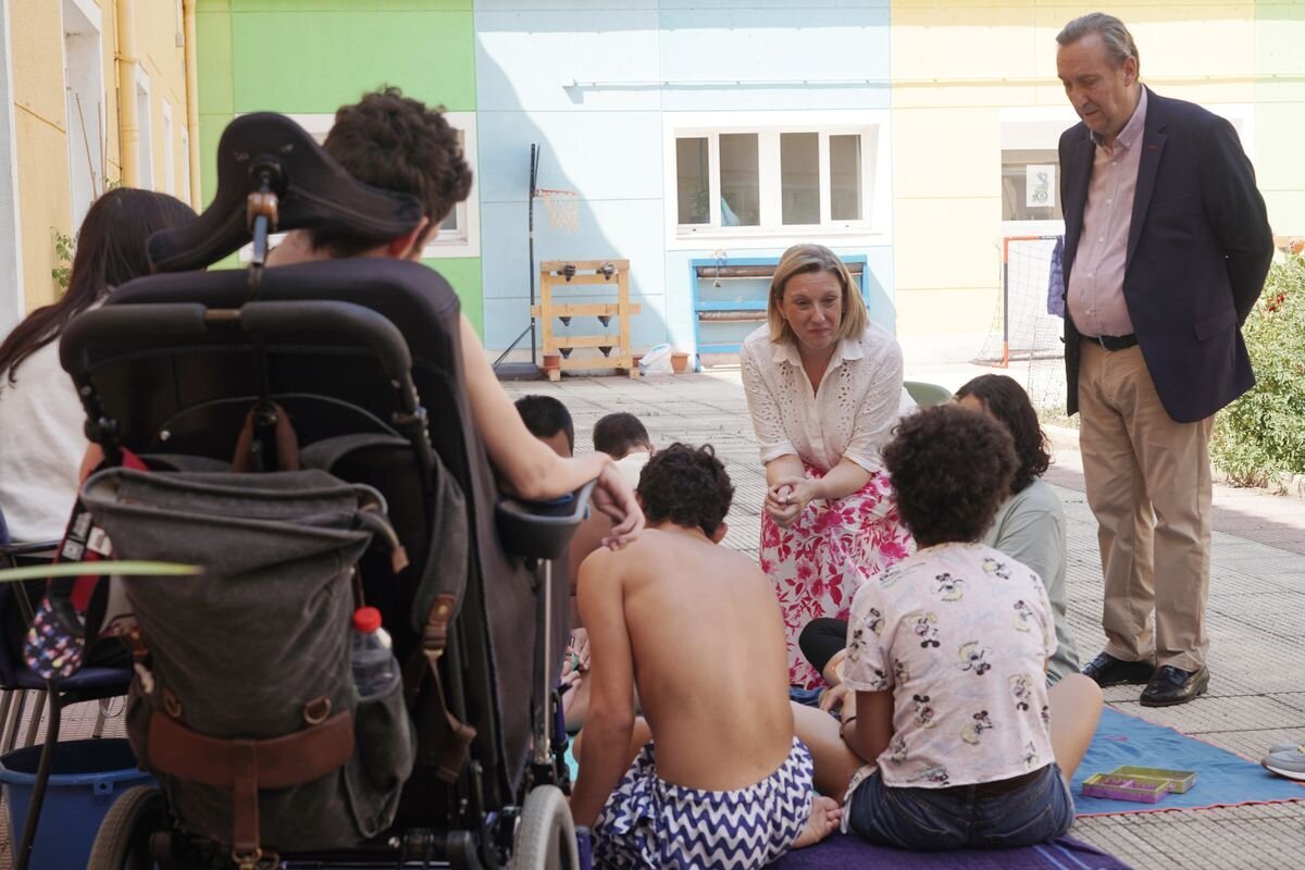 Durante su visita, la consejera de Familia estuvo acompañada por el nuevo presidente de Fundación Personas Valladolid, Carlos Martín Pérez, quien explicó que en verano ‘El Pino de Obregón’ funciona como centro de respiro para las familias, aunque estos días también acoge a varios de los niños ucranianos que tiene tutelados la Junta.