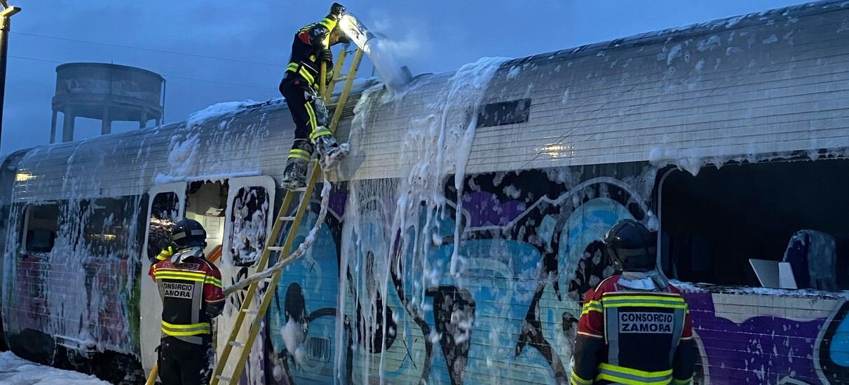 Dos dotaciones del Consorcio Provincial de Prevención y Extinción de Incendios, Salvamentos y Protección Civil de la Diputación de Zamora sofocaron hoy el incendio declarado en un vagón del tren regional que comunica Valladolid con Puebla de Sanabria (Zamora). Los ocho pasajeros que viajaban en ese vagón resultaron ilesos, según confirmaron fuentes de la Institución provincial.
