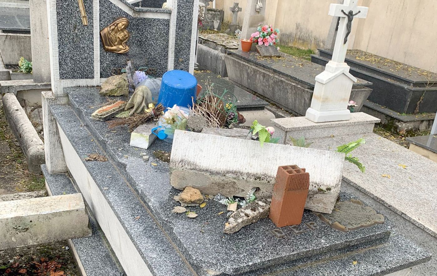 Imagen de los daños ocasionados por el detenido en las tumbas del cementerio.