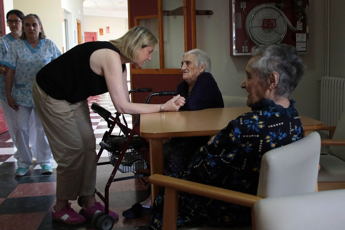 La vicepresidenta de la Junta, Isabel Blanco, visita a los realojados en una residencia de Alija del Infantado