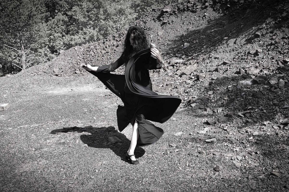 Estrella R. (Estrella R. Artes Escénicas) baila a las luces y sombras que lanza Jesús mientras su cuerpo es acariciado por las músicas de Víctor. Estrella vuelve a sus orígenes coreográficos para reconectar con las bases flamencas, pero en su esencia personal, “huyendo de peinetas, lunares y volantes”. Los pies y el zapateado, como una máquina de coser, hilando cada puntada de sus compañeros al son del Tracatá y jugando con otros elementos sonoros para transportar al público a los distintos escenarios del proceso.