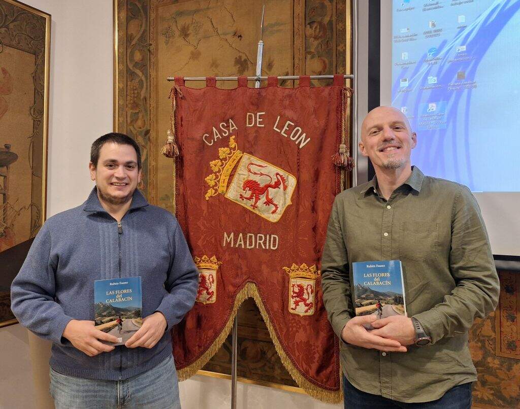 La Casa de León en Madrid celebró en la tarde de este viernes la presentación de 'Las flores del calabacín', la novela debut del autor leonés Rubén Fauno. El acto, que congregó a numerosos asistentes, estuvo conducido por Javier Morán, miembro de la Junta Directiva, quien destacó el valor literario de la obra y acompañó la intervención del autor con la lectura de varios pasajes y un breve acompañamiento musical.