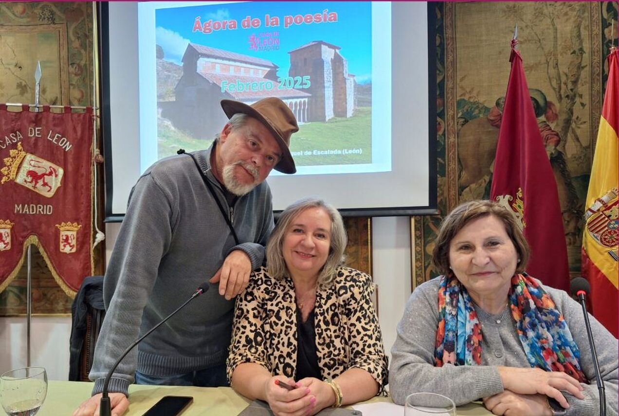 El acto fue presentado, en nombre de la Casa de León, por Pilar Pacho y Margarita Álvarez, miembros de la Junta Directiva, y Xavier de Tusalle, escritor, músico y editor, y también socio de la Casa, quienes también participaron recitando poemas.