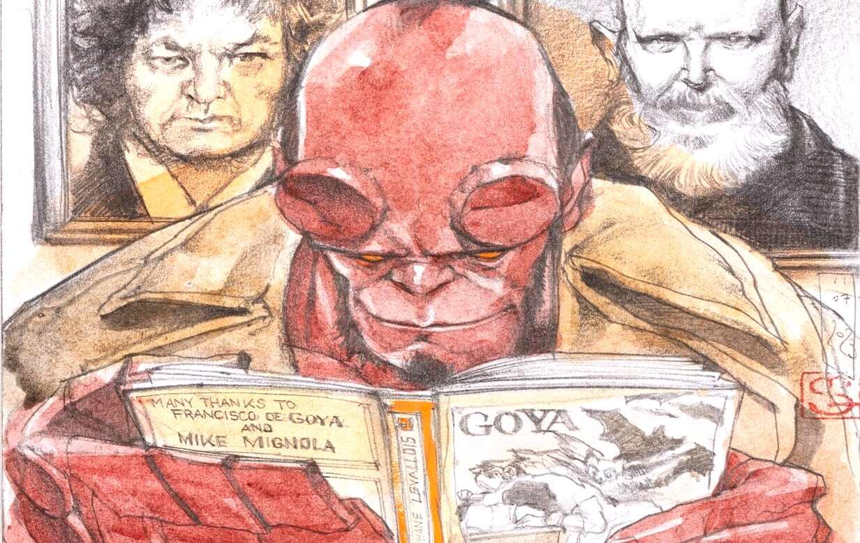 La muestra explora el diálogo entre la obra de Francisco de Goya y el universo del ilustrador Stéphane Levallois, incorporando la figura de Hellboy, personaje creado por Mike Mignola.
