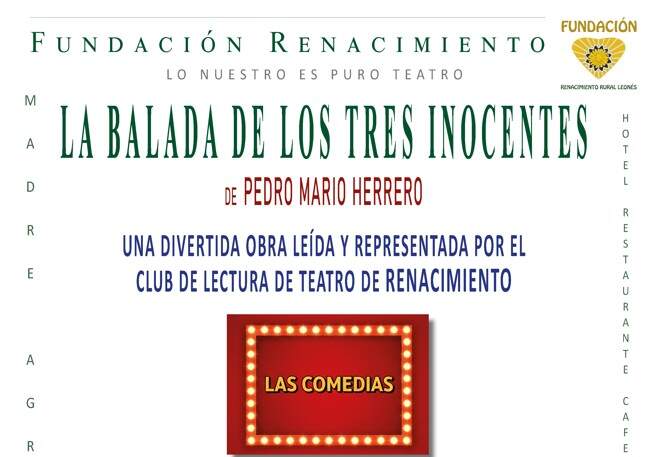 La segunda convocatoria corresponde al Club de Lecturas Teatrales "Las Comedias", iniciativa de la Fundación que se estrenará el domingo, 21 de diciembre. La puesta de largo se desarrollará a las 17,30 h en el Aula de la Fundación, con la lectura actuada de "La balada de los tres inocentes", texto de Pedro Mario Herrero.