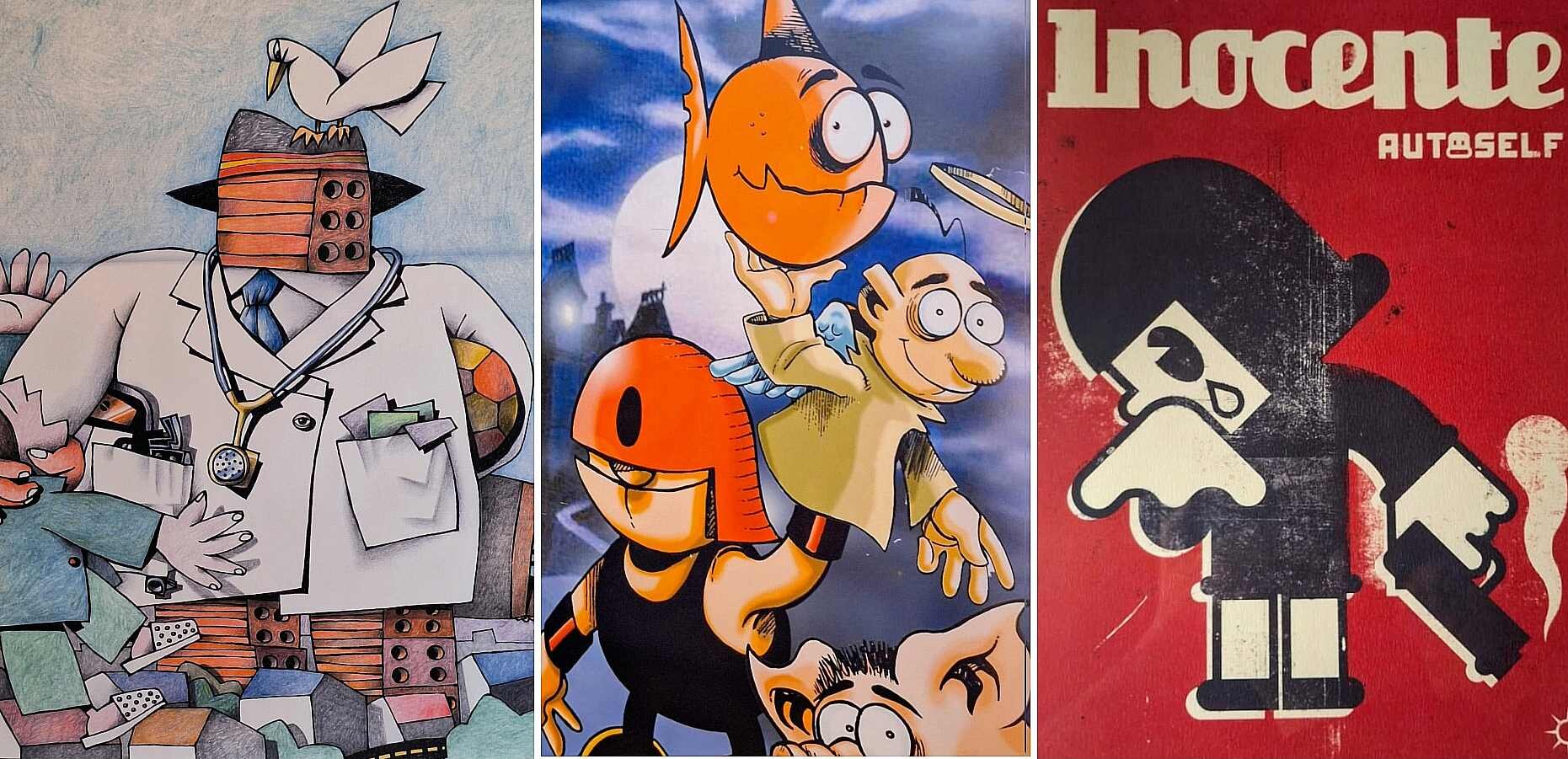 Doctor Hoffman, por su parte, ha participado en infinidad de muestras por todo el mundo, desde Londres a Barcelona pasando por Tokio o México, mientras que Javier Zabala atesora algunos de los grandes reconocimientos nacionales y europeos, y fue premio Nacional de Ilustración en el año 2005. Pero la exposición también cuenta con autores de la talla del berciano Tino Gatagán, de enorme prestigio español e internacional; de Manolo Jular, viñetista e ilustrador clave para esta tierra -baste recordar su aportación al humor gráfico vinculado al sindicato Comisiones Obreras-; y de Luis Sáenz de la Calzada, personalidad fundamental de la Institución Libre de Enseñanza y de la compañía La Barraca, de Federico García Lorca.