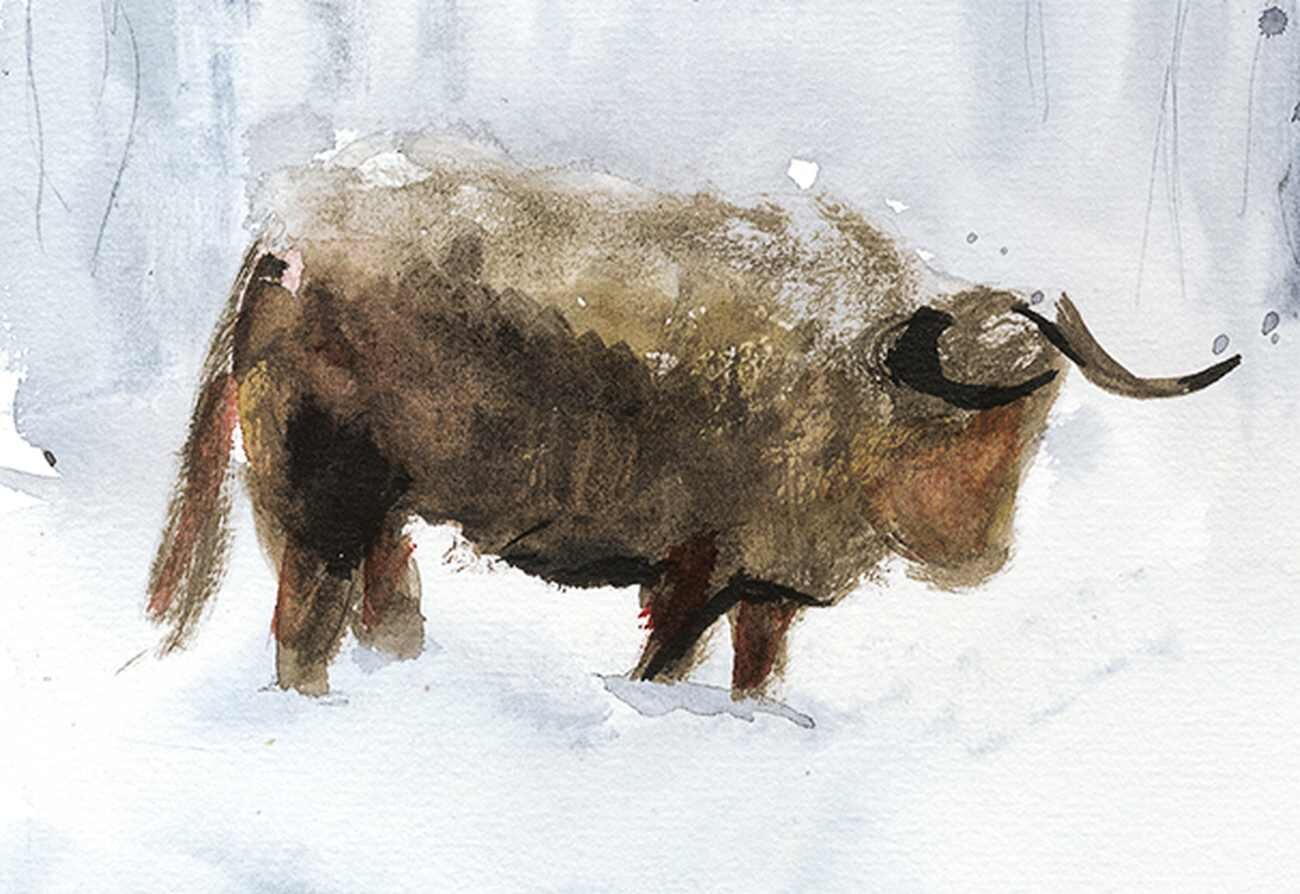 Todas las ediciones de ‘La lentitud de los bueyes’ tienen su sabor. Y esta que Nórdica Libros nos regala en esta ocasión es una auténtica delicia porque está ilustrada con unas bellísimas acuarelas de Leticia Ruifernández (Madrid, 1976). Son objetivamente hermosas, simbólicas, sugerentes. Y siguen de maravilla el compás que marcan los versos del imaginario de Julio Llamazares: ‘Todo es tan lento como el pasar de un buey sobre la nieve’, ‘Mi voz será como un paréntesis de duda’, ‘Lejos de los campos rojos y las aguas lentas…’, ‘De vez en vez, la tristeza’.