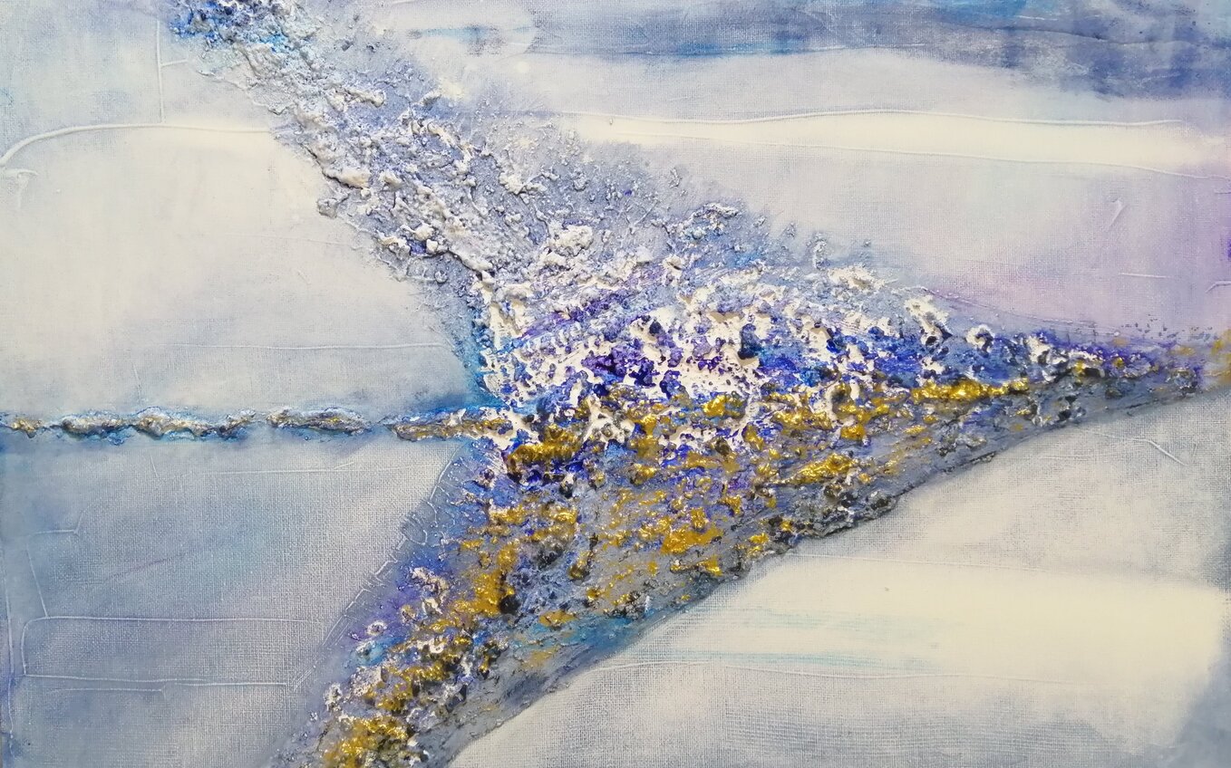 La exposición reúne una docena de cuadros en los que la artista propone rutas que trasladan al espectador a paisajes imaginarios, orillas de mares evocados en la memoria o arquitecturas que dialogan con la imaginación. El objetivo, explica, es “detener la pulsión de la prisa y el prisma del utilitarismo” para dar espacio a la contemplación.