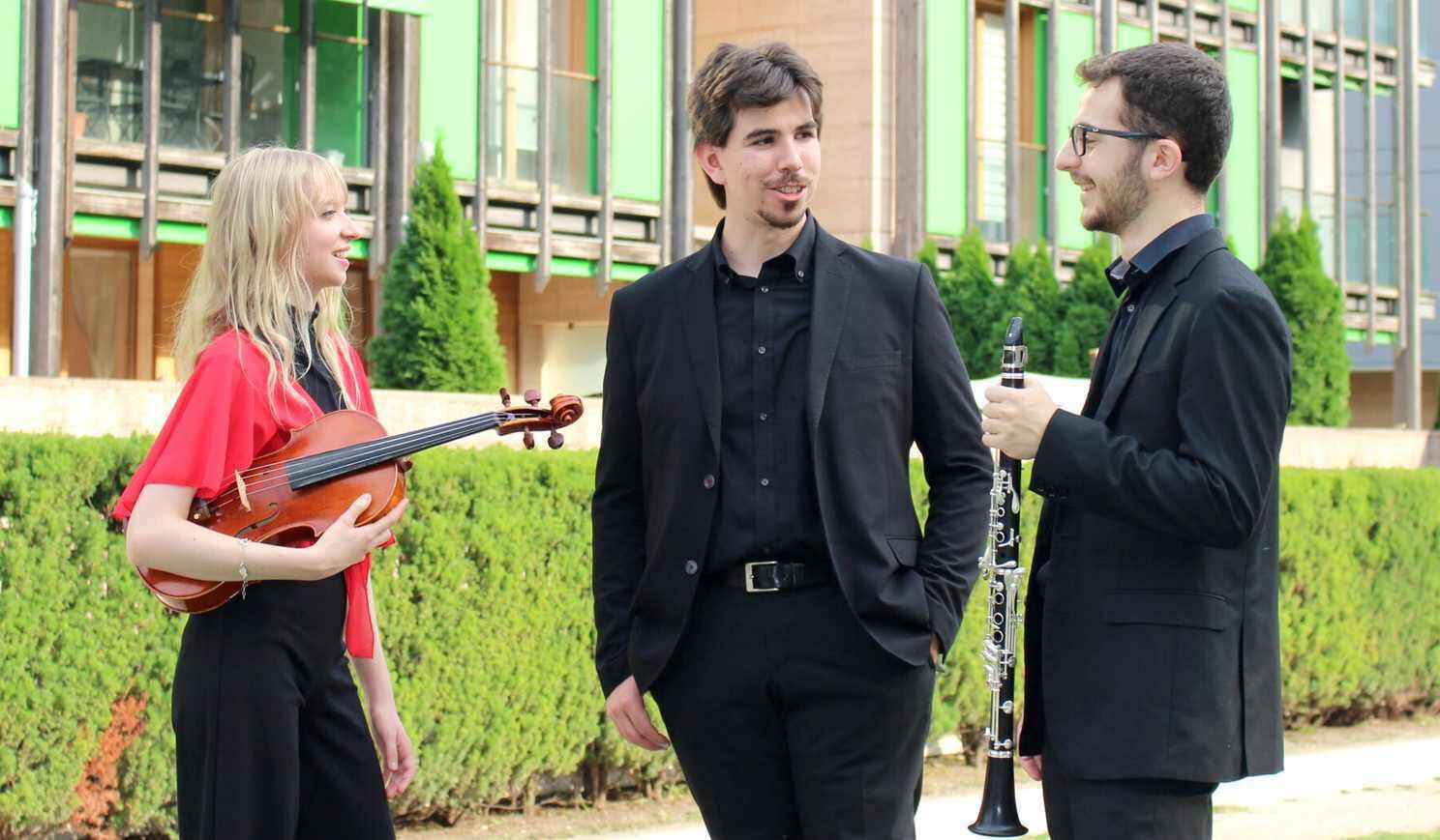Trío Reinecke formado por Bernardo Bertamini (clarinete), Elena Lorenzoni (viola) y Samuele Masera (piano).