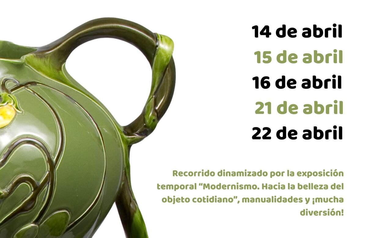 "Semana Santa Modernista: Creando Belleza Cotidiana" bajo este título se han centrado las actividades de los talleres que están relacionadas con la exposición temporal 'Modernismo. Hacia la belleza del objeto cotidiano'. Los asistentes podrán explorar la creatividad modernista a través de visitas a la exposición temporal y sus actividades como diseñar objetos cotidianos, crear rincones de fantasía, jugar con la luz y la naturaleza, y experimentar con formas y colores.