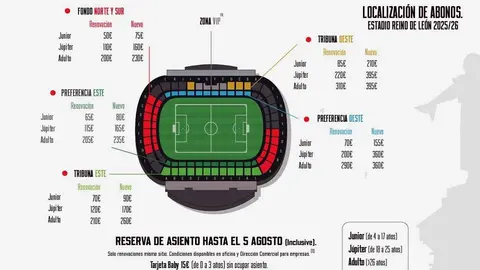En la categoría infantil (junior), renovar costará entre 50 y 85 euros, y los nuevos abonos estarán entre 75 y 210 euros. Para los jóvenes de la categoría Júpiter, las renovaciones costarán entre 110 y 220 euros, y los nuevos carnets, de 160 a 395 euros.