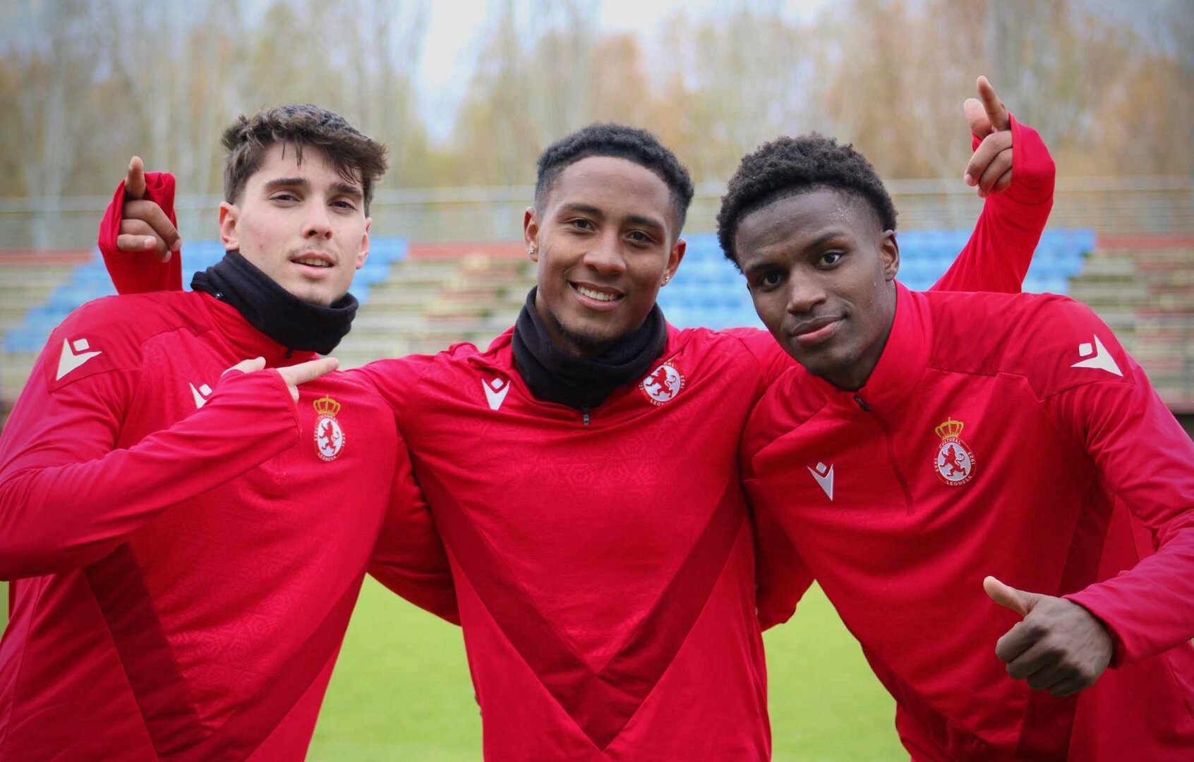 Hinojo, Ribeiro y Diallo, en un entrenamiento en el Área Deportiva de Puente Castro.
