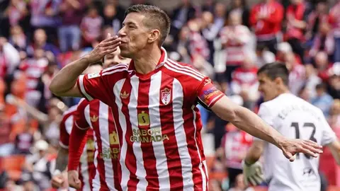 El partido apenas había comenzado cuando el guion quedó marcado. En el minuto 3, un penalti muy discutido por un leve agarrón de Víctor García sobre Alcaraz terminó en el 1-0. El propio Alcaraz no falló desde los once metros y adelantó al Granada.