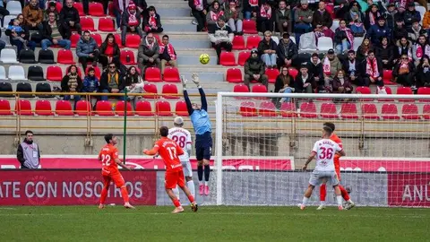El primer gran susto llegó en el minuto 17. Ochieng, muy activo desde el inicio, estrelló el balón en el larguero tras un disparo que rozó en Rodri Suárez. Fue la ocasión más clara hasta ese momento y un serio aviso de lo que vendría después. Édgar Badía ya había tenido que intervenir antes para detener otro remate del propio Ochieng.