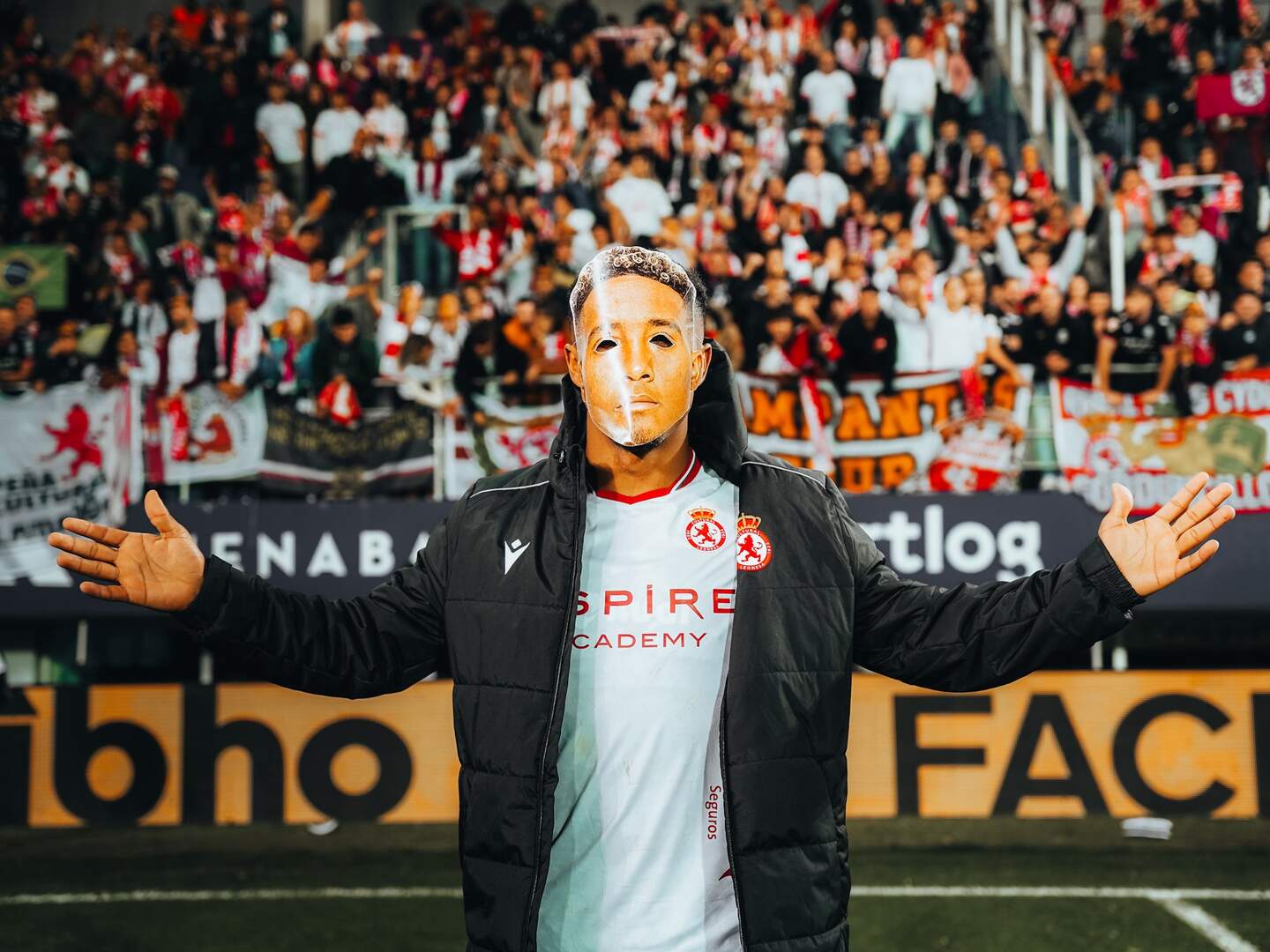 El extremo festejó la victoria con la máscara puesta, señal inequívoca de la conexión especial que mantiene con su público.