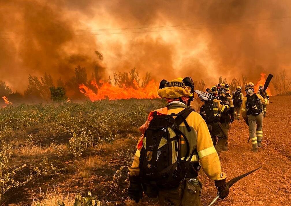 Bomberos forestales de la Brif La Iglesuela trabajan en el incendio de Barniedo de la Reina. Foto: Brif La Iglesuela