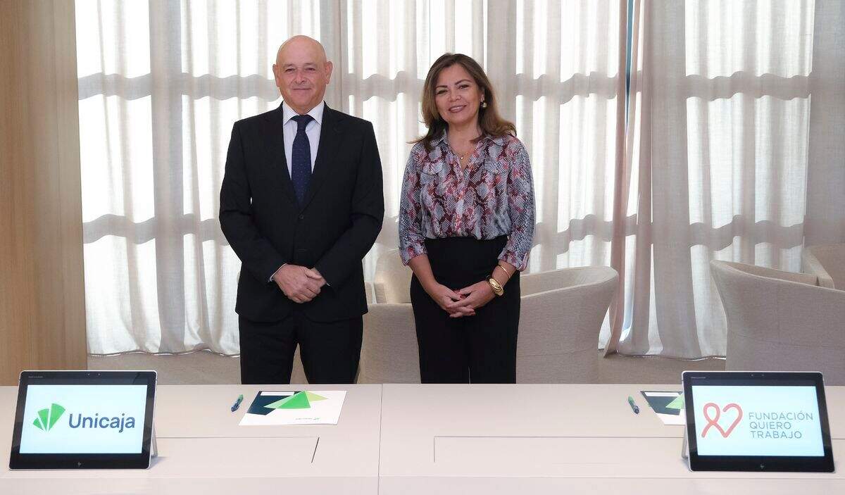 El convenio ha sido firmado por el director de Comunicación e Imagen de Unicaja, Fernando Ríos, y por la directora de la oficina de Málaga de la Fundación Quiero Trabajo, Silvia Ortiz.
