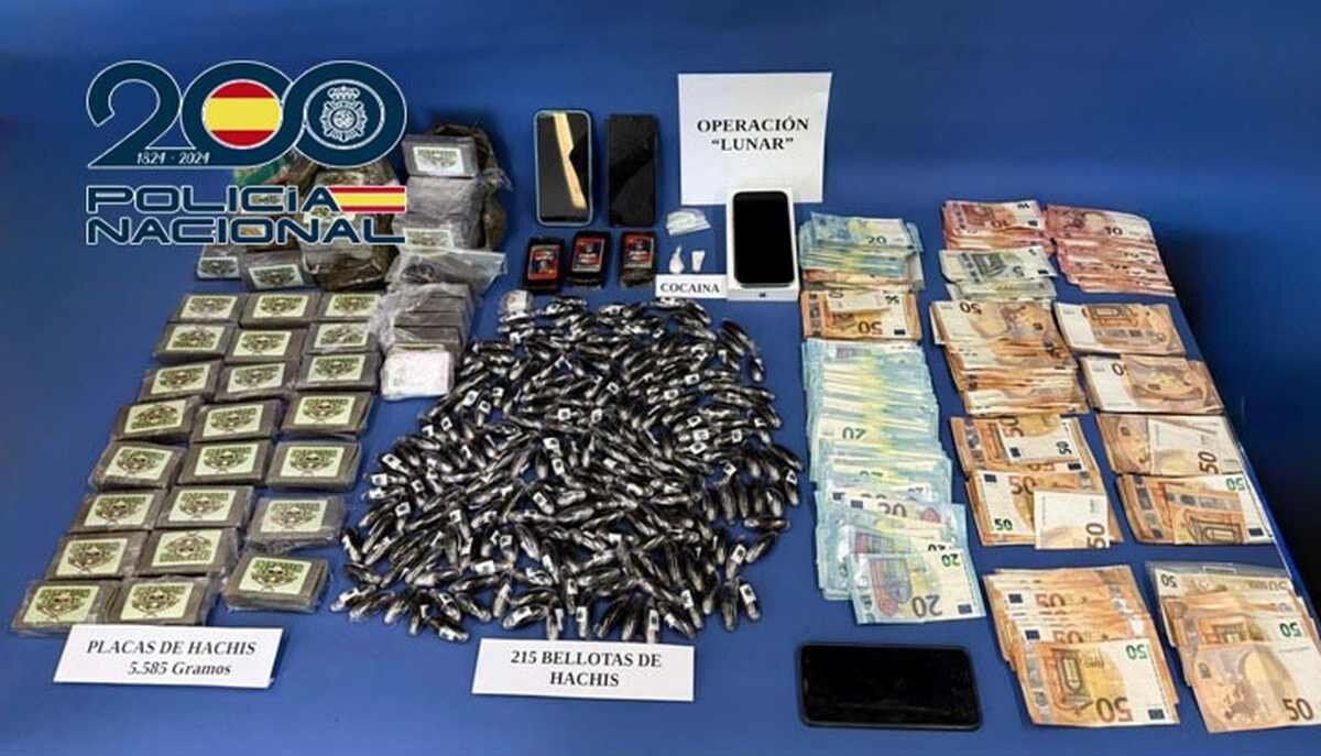 La fase final de la operación se llevó a cabo el pasado martes 27 de mayo, cuando los agentes interceptaron a los dos sospechosos durante un intercambio de droga por dinero en un parque de la ciudad. En los registros domiciliarios y de un local se intervinieron 7.766 gramos de hachís (distribuidos en 215 bellotas y 56 placas) y 17.415 euros en efectivo.
