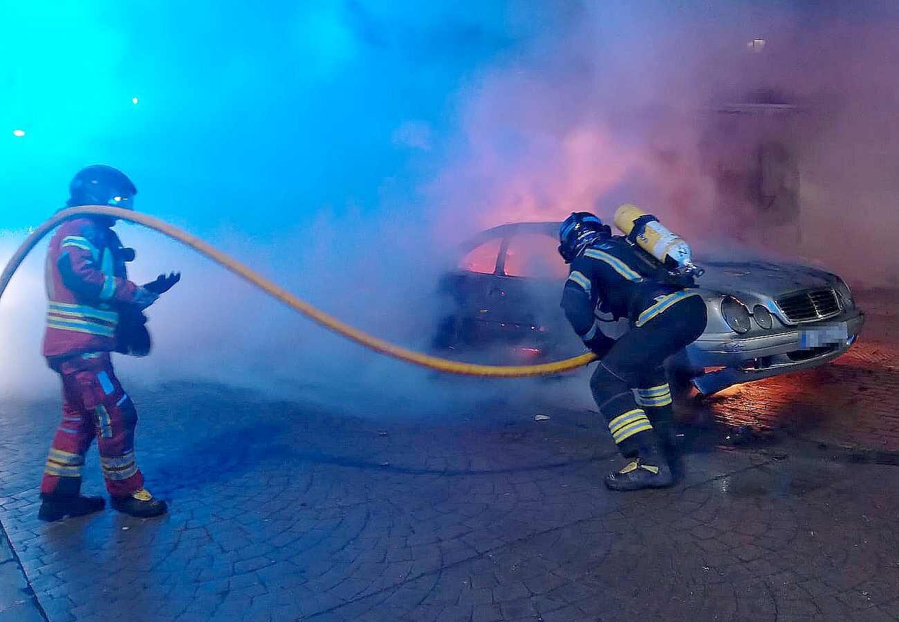 Del primer suceso se dio aviso a las 00:30 horas alertando de un vehículo que se encontraba ardiendo en la calle Flora, en Fuentenuevas.