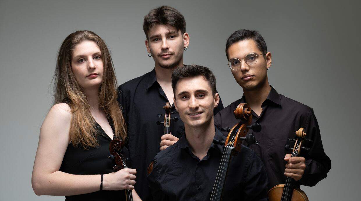 Fundado en 2019 en la Escola Superior de Música de Catalunya (ESMUC), el Cuarteto Vivancos es una formación emergente que se ha consolidado rápidamente en el panorama musical. Sus integrantes —Alexis Garita y Jordi Prim Roma (violines), Estela Megías Sánchez (viola) y Quim Tejedor Arruga (violonchelo)— se formaron bajo la tutela del prestigioso Quartet Casals, obteniendo Matrícula de Honor al finalizar sus estudios.