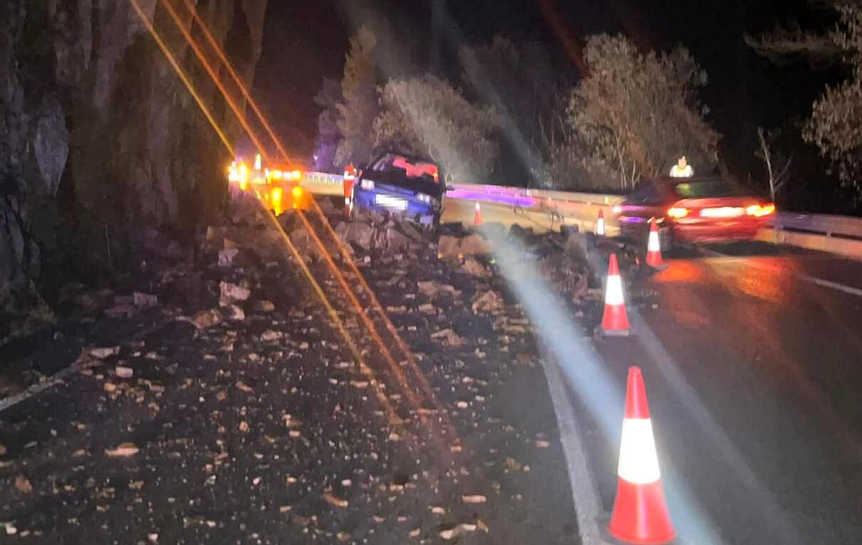 La caída de rocas afectó esta noche a un coche que circulaba por la zona, aunque no hubo daños personales, y las máquinas comenzaron a trabajar de forma inmediata para despejar la vía, por la que, no obstante, se recomienda circular con precaución por si se repite algún derrumbe.