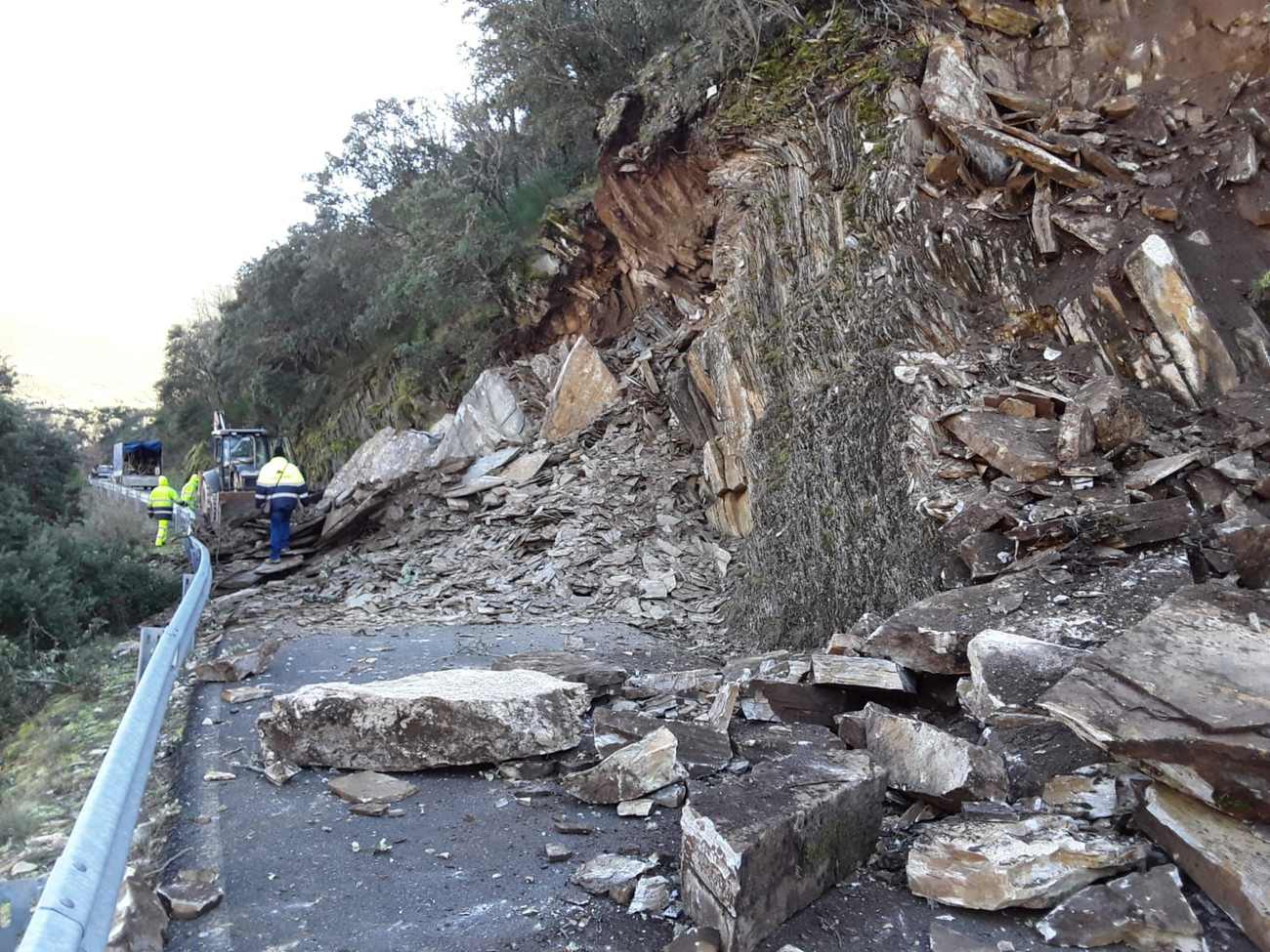 La Diputación de León realizará obras de emergencia en la zona donde ayer se produjo un desprendimiento de rocas que provocó el corte de la carretera de Montes de Valdueza, en el municipio de Ponferrada.