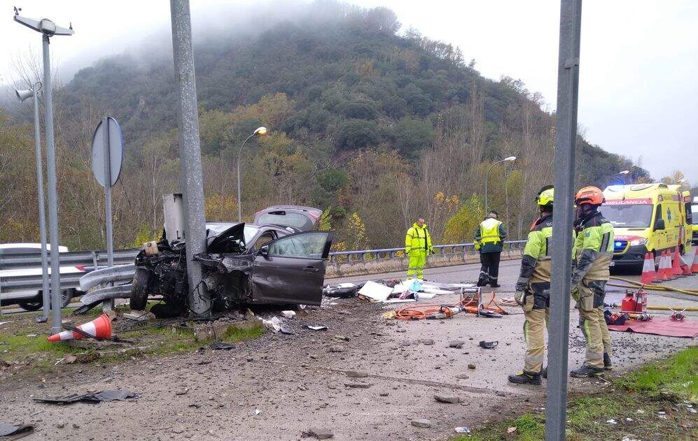 Herido un hombre de 50 años tras chocar con un poste en la A-6 y quedar atrapado. Foto: Bomberos Ponferrada.