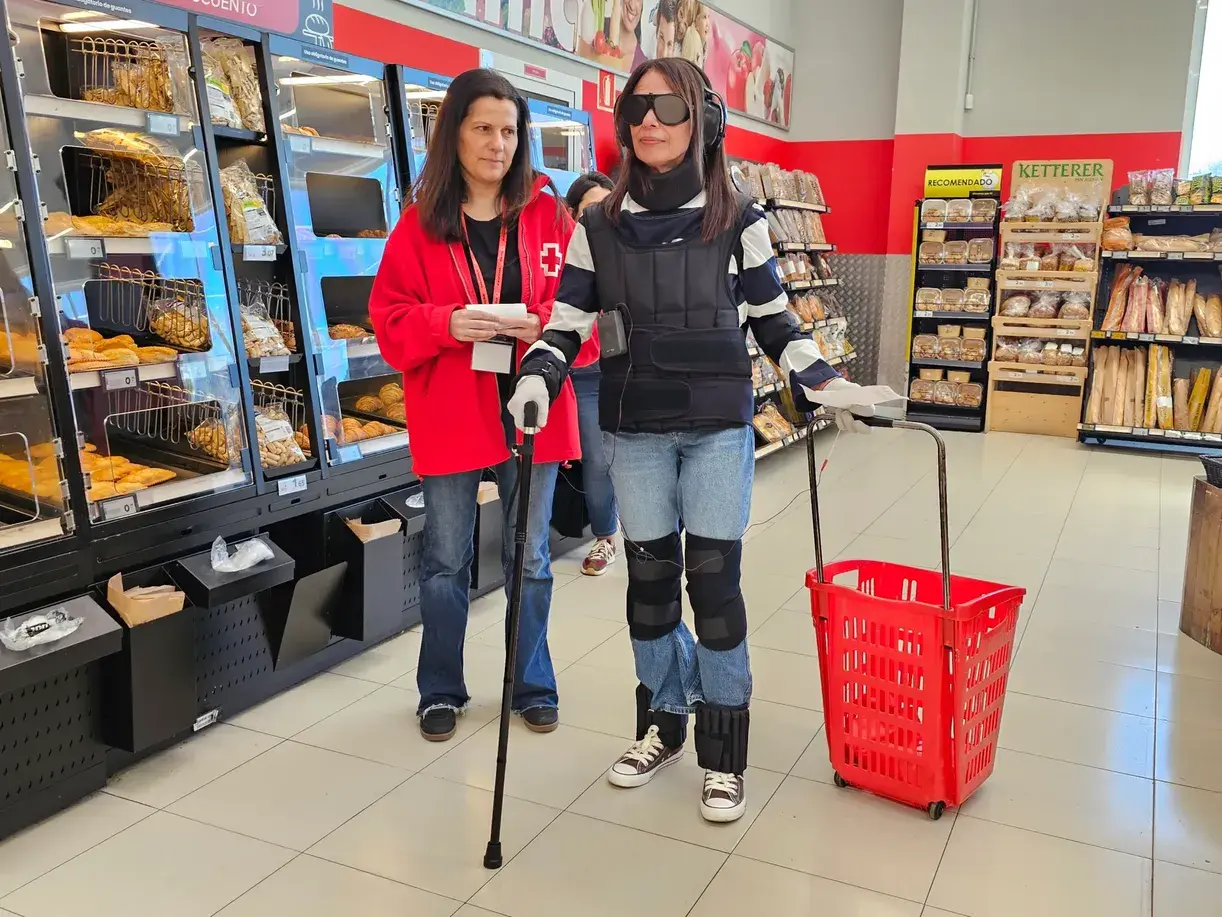 Eroski y Cruz Roja realizarán una jornada de sensibilización contra el edadismo el próximo jueves 16 en el supermercado Familia con una experiencia inmersiva a través de un novedoso traje que simula las patologías comunes del envejecimiento