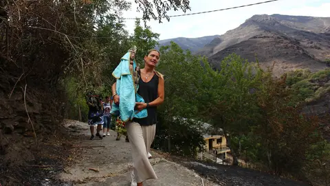 Convencida de que “el fuego va a bajar la ladera”, la vecina aguarda junto a otras personas que decidieron no desalojar sus viviendas para que “cuando baje al pueblo se pueda controlar con riegos, fuentes o mangueras”.