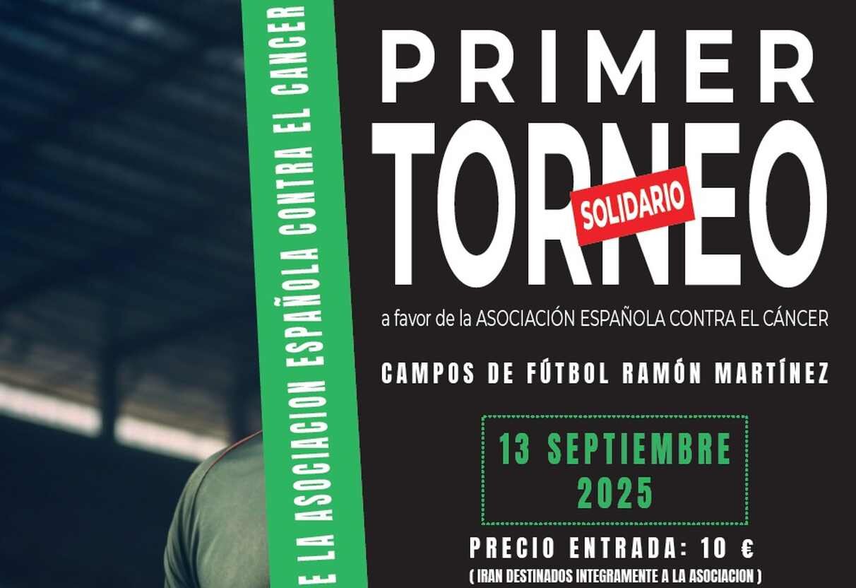 El próximo 13 de septiembre, los campos de fútbol Ramón Martínez serán el escenario del I Torneo Solidario de Fútbol 7. La competición, organizada a beneficio de la Asociación Española Contra el Cáncer (AECC), reunirá a equipos de las categorías Prebenjamín, Benjamín, Alevín e Infantil.
