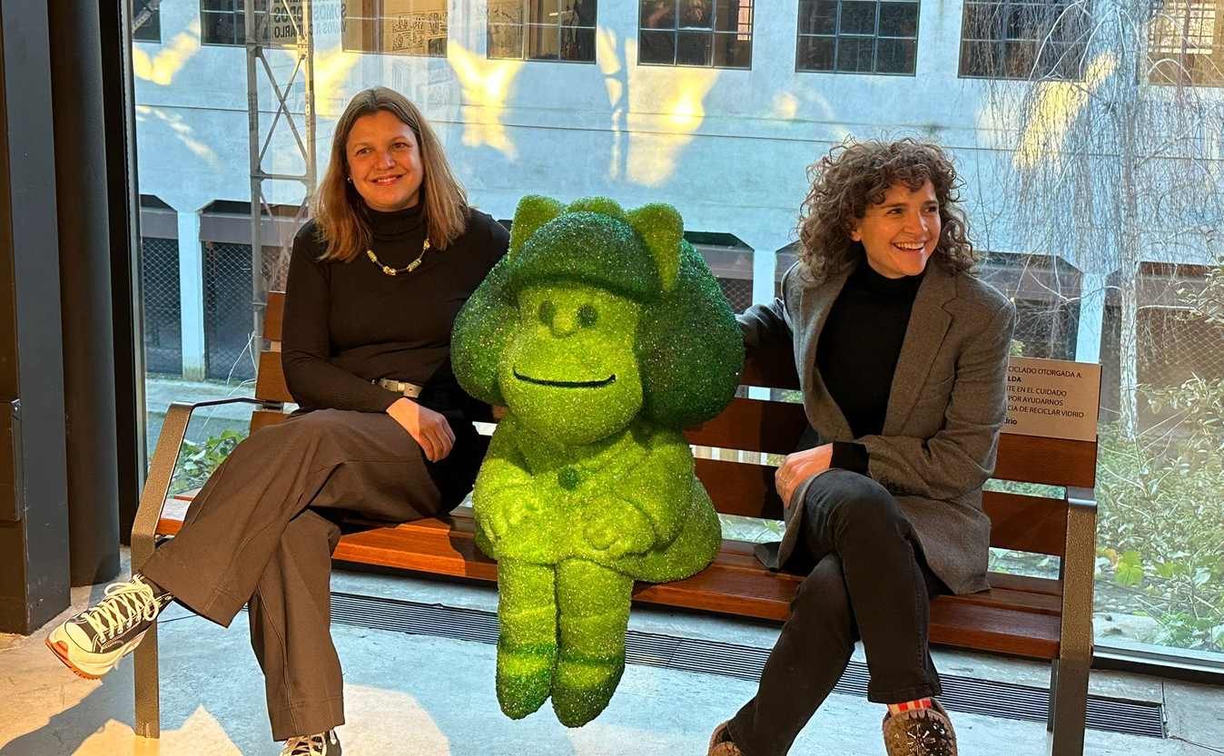 Creada por Ecovidrio, la escultura de Mafalda realizada con vidrio reciclado es una pieza exclusiva que refuerza el compromiso con las prácticas sostenibles.