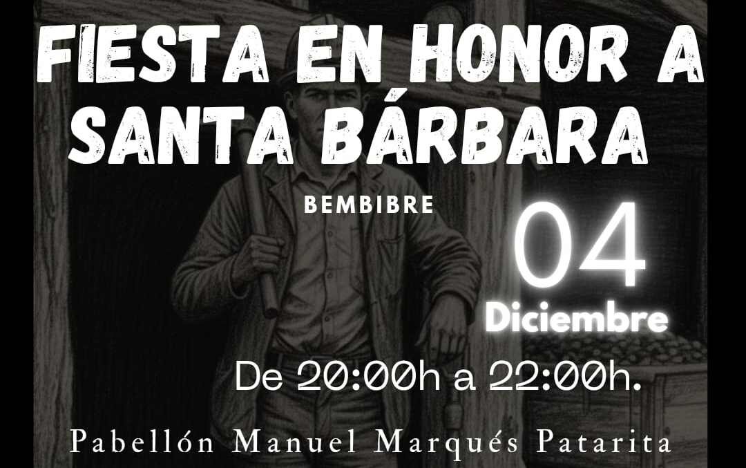 El próximo 4 de diciembre se celebrará el Día de Santa Bárbara en el Pabellón Manuel Marqués Patarita (cemento) de Bembibre. Según informa la organización, la actividad tendrá lugar “de 20:00 a 22:00 horas”.