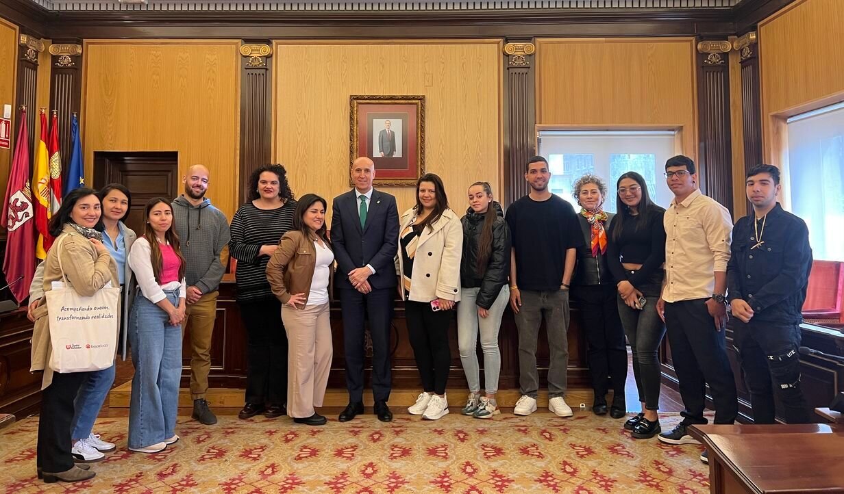 El alcalde de León, José Antonio Diez, ha recibido este lunes en el Consistorio de San Marcelo a diez alumnos adultos, acompañados por dos docentes, del Proyecto de Itinerarios de Inserción Sociolaboral que participan en la formación de Actividades Auxiliares de Comercio en la Fundación Juan Soñador en León.