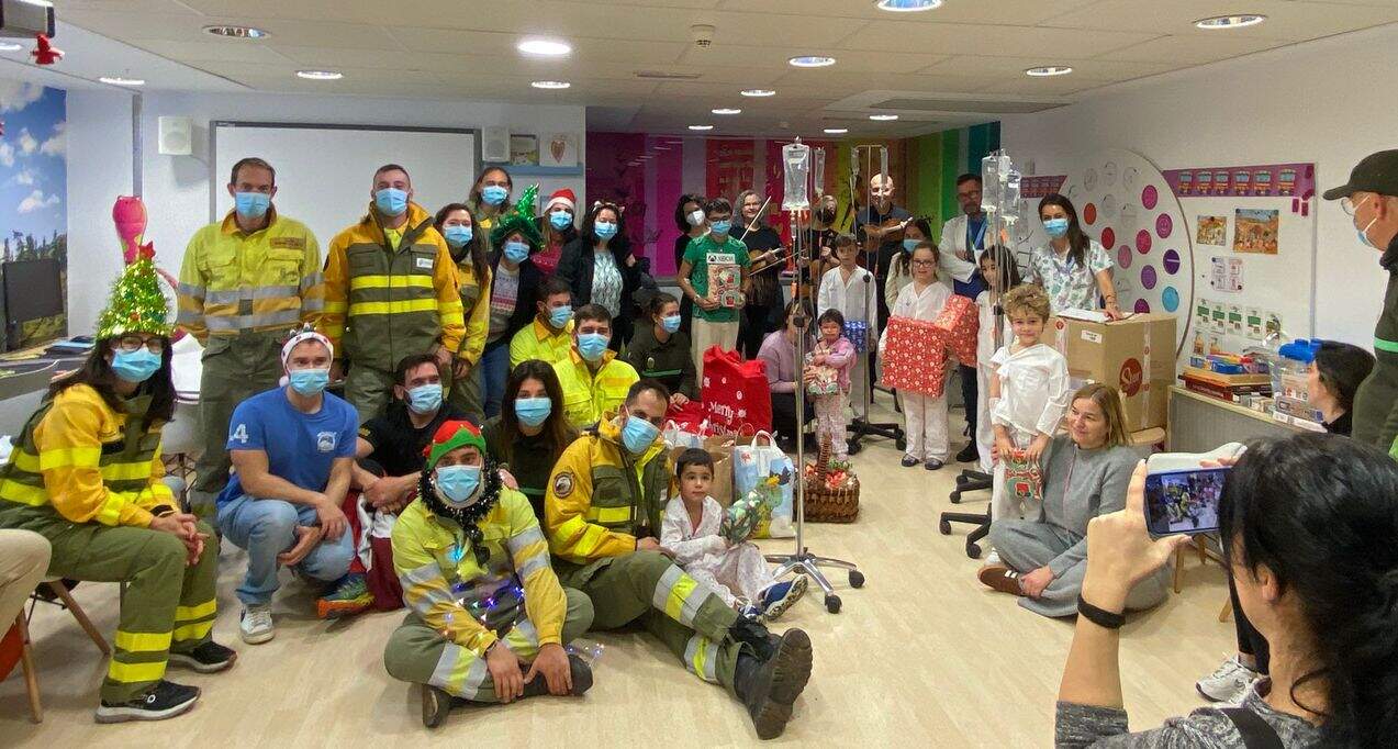 Los Bomberos Forestales de León se acercaron este lunes al Hospital Universitario de León para entregar, como ya viene siendo tradicional cada año, unos regalos a las niñas y niños ingresados en la planta de Pediatría.