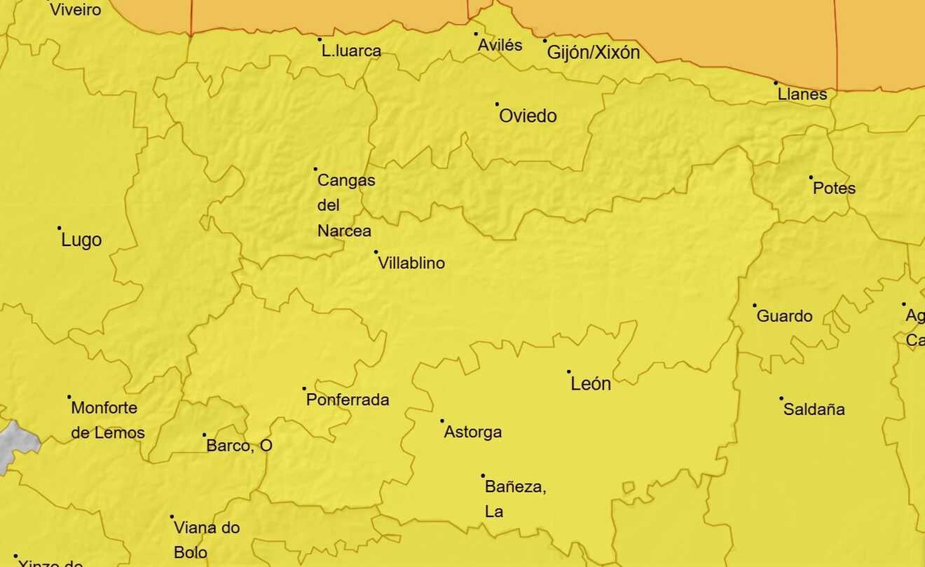 La cota de nieve bajará de forma notable y podrá situarse entre los 700 y 1.000 metros en el norte peninsular. En la provincia leonesa, la alerta amarilla se mantiene por nevadas a partir de los 1.100 metros, con acumulaciones significativas en la Cordillera Cantábrica y zonas altas del Bierzo y Laciana.