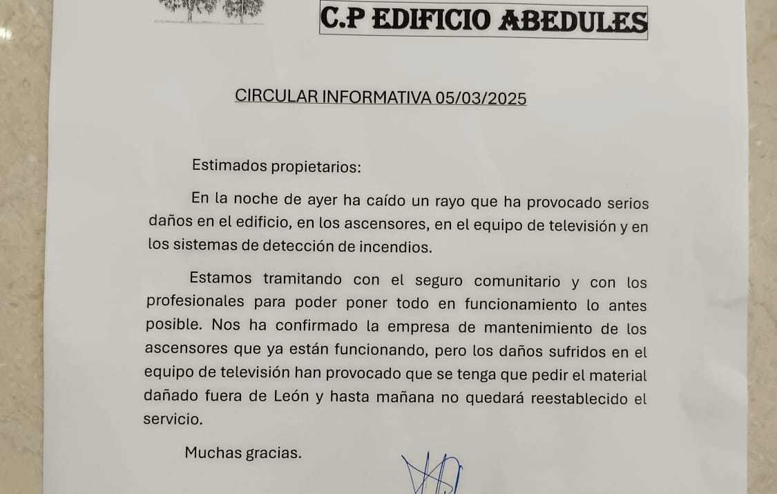 La caída de un rayo ha bloqueado los servicios eléctricos y electrónicos de un edificio completo en el Área 17 de León capital.