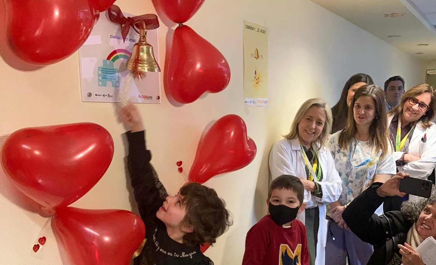 Ha sido Nahia, una niña de 7 años, quien la ha tocado hoy, por primera vez, terminado su tratamiento de quimioterapia. El proyecto Campanas Fin de Tratamiento, ha sido organizado por Alcles de acuerdo con el servicio de Pediatría del Caule. La próxima semana, la campana, también instalada en el Hospital de Día Oncohematológico, será tocada por un adulto.